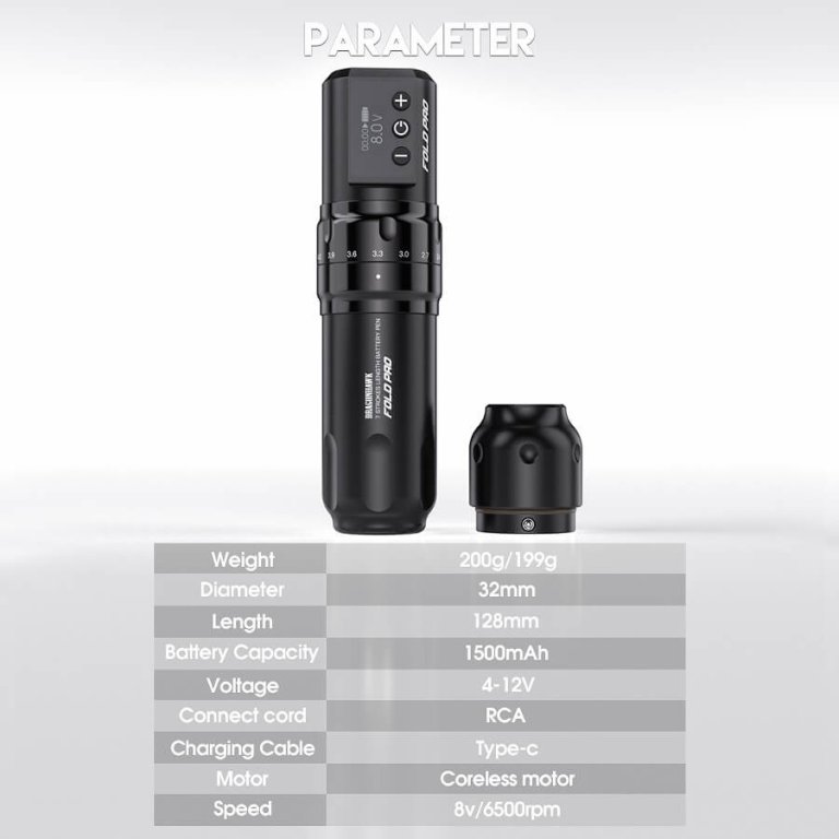 7 Stroke Uzunluğuna Sahip Dragonhawk Kablosuz Dövme Makinesi Kalemi | Fold Pro (2 Bataryalı Versiyon)
