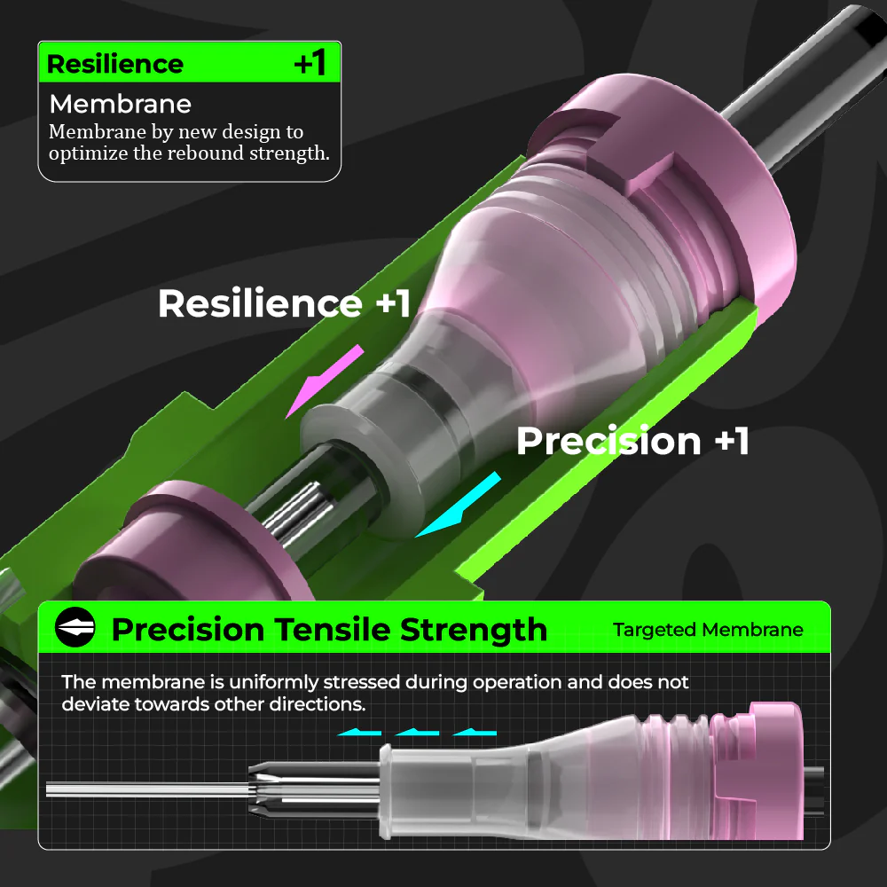Uzatılmış iğne ağzı ve tel yapısı, mürekkep aktarımını ve deriye giriş verimliliğini artırır. Bu kartuşlar, mürekkep damlamasını ve sıçramayı en aza indirecek şekilde tasarlanmıştır; hijyen ve mürekkep hassasiyeti iyileştirilir.